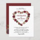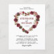 Elegantes invitaciones a bodas de bajo presupuesto que incluyen un corazón floral de color marsala rojo, burdeos y color rosa rubí, y una plantilla moderna de boda.
