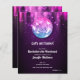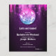 Una bola de discoteca resalta estas invitaciones de fin de semana de la Bachelorette Party. Tus detalles en letras blancas de moda y los detalles del fin de semana en la parte trasera.