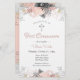 Tipografía de escritura floral blanca y rosa milenaria. Primeras invitaciones presupuestarias de la celebración floral de la Comunión. Puede agregar fotos a la parte posterior o texto adicional si es necesario.