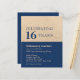 Celebre su aniversario de negocios con estas invitaciones de fiesta de oro y azul marino impresas en papel semi brillante de 4.5" x 5.6" de precio reducido de 110 libras. Personaliza tu propio texto para tu ocasión. MÁS COLORES, tamaños, papel más pesado y opciones de descarga instantánea disponibles en nuestra colección.