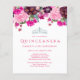 Invitaciones Elegantes de Quinceañera Floral. Creado con flores rosadas y púrpuras y un acento de corona de diamantes en un fondo blanco que se puede cambiar a cualquier color que prefiera. Hecho para especial para adolescentes, esta invitación de Quinceañera será una fabulosa introducción a su día especial. Suministros adicionales de fiesta de Quinceañera coordinados están disponibles en la tienda Zazzle de Metro-Events y Metro-Event.com.