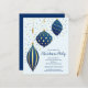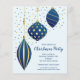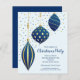 Pequeñas invitaciones de 4.5" x 5.6" presentan adornos de árboles de Navidad azules y dorados y detalles de fiestas de Navidades de vacaciones en letras de moda sobre un fondo azul pálido. Estas invitaciones económicas se imprimen en un material de 110 libras de cartón semi-brillante disponible en 3 tamaños. **LOS ENVELOPES blancos SON OPCIONALES y se pueden agregar a su pedido por un costo adicional. Asegúrese de comprobar dos veces su pedido antes de añadirlo a su carrito, ya que lo que ve en la pantalla es lo que se va a imprimir. El servicio de diseño en vivo puede ayudarle con su diseño de diseño si es necesario. COINCIDIENDO con los artículos de nuestra tienda.