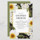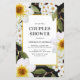 Invite a su familia y amigos a su evento con esta invitación a la ducha de parejas botánicas. Cuenta con hermosos ilustraciones de dahlias blancas y zonas verdes. Esta ducha de flores invita a las parejas en primavera, otoño y jardín.