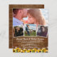 Invitaciones rústicas de boda asequibles con fondo de madera de moda de campo, 4 fotos de la pareja comprometida, girasoles amarillos brillantes, luces de cuerda y un moderno patrón de boda que es fácil de personalizar. NOTA: Estas son hojas de papel de presupuesto, no vienen con sobres. Sin embargo, este diseño se puede transferir a tarjetas de invitación que vienen con sobres.