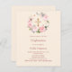 A soft ivory blush background, decorated with watercolored pink and white flowers in a wreath and a golden cross. Personalize and add a name and details.