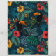 patrón tropical sin costuras con hojas y flores tropicales y 2 pájaros toscanos.