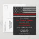 Celebra tu retiro e invita a amigos y familiares a tu retiro de bomberos con esta invitación a retiro de bomberos de la delgada línea roja - diseño de bandera estadounidense con colores de la bandera de Fireman , diseño angustiado . Estas tarjetas postales de invitación para retiro de presupuesto deben enviarse por correo como tarjetas postales sobredimensionadas, por lo que pueden incurrir en cargos postales estándar, pero no necesitan un sobre o una etiqueta de dirección de retorno. Personaliza con el nombre, el departamento de bomberos, la dirección y los detalles del rsvp. Esta invitación de retiro para bomberos puede ser usada para graduación de bomberos, simplemente cambiar el texto cuando se personaliza. Vea nuestra colección para encontrar regalos de retiro para bomberos, favores para fiestas y suministros. DERECHOS RESERVADOS © 2020 Judy Burrows, Black Dog Art - Todos los derechos reservados. Jubilación del bombero de la línea roja delgada del presupuesto