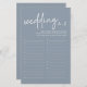 El Boda A-Z Dusty Blue Bridal Shower Game es un lugar ideal para una inolvidable ducha de novias que encantará a la novia y a los huéspedes. Este juego de ducha de novias en tendencia tiene a los invitados palabras de lluvia de ideas empezando con cada letra del alfabeto que se relaciona con bodas, amor y matrimonio. Es un gran rompehielos que hace que todos participen en las festividades. El diseño minimalista cuenta con un guión moderno, perfecto para una moderna decoración de moda con el tema de la ducha de novia.