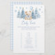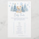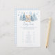 Añada un toque de elegancia a su ducha de bebé con temática festiva de invierno con nuestro sofisticado juego "Baby Traits". Con un encantador oso de peluche vestido con una bonita proa azul, sosteniendo un globo azul, rodeado de pinos de invierno y copos de nieve y un patrón de gingham azul en la parte trasera, esta deliciosa actividad es perfecta para entretener a sus huéspedes y crear recuerdos duraderos. Ideal para añadir diversión y emoción a su celebración especial!