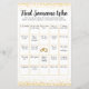 Aniversario de los Bodas de Oro del juego "Encuentra a alguien que" - Celebrando 50 años juntos - Personalizable Conmemorar 50 años dorados de amor y compañía con nuestro juego "Encuentra a alguien que", especialmente diseñado para aniversarios de Bodas de oro. Este interesante juego interactivo anima a los invitados a mezclarse y compartir historias, convirtiéndolo en el perfecto rompehielos para esta monumental celebración. Mejore la celebración del 50 aniversario con un juego que haga que todos hablen, se rían y recuerden. Perfecto para fiestas grandes y pequeños, nuestro juego "Find Someone Who" añade un elemento personal e interactivo a las festividades, celebrando el hito dorado de la pareja de una manera verdaderamente memorable. La parte trasera del juego tiene el nombre de la pareja para que usted lo personalize.