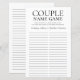 Lámina Juego de apodo de pareja juego de ducha de novia