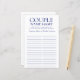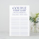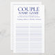 Este bonito juego de ducha de novia azul marino con apodo de pareja es perfecto para cualquier ducha. Este juego divertido y fácil seguro traerá muchas risas a cualquier ducha de novia. Simplemente dé una hoja a cada invitado (no se olviden de los bolígrafos) y deje que empiece la diversión! Te sorprenderá ver cuántas palabras diferentes se le ocurren usando el nombre completo de la novia. Para hacer de este juego su propio juego simplemente seleccione Personalizar esta plantilla y escriba los nombres de la novia y del novio.
