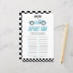 Este es un juego de Baby Shower de los alfabetos de los coches de raza azul. *Juego de alfabetos - Los invitados rellenarán una palabra que tiene que ver con los bebés por cada letra del alfabeto. ¡Quien llene más palabras, gana!