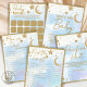 ¡Juego de Baby Shower de Bingo Bebé! Este juego de ducha para bebés, situado sobre un fondo de nube, cuenta con estrellas y luna de oro. Este es un diseño perfecto para duchas de bebé neutras y más. También hay invitaciones a la ducha de bebé, decoración y letreros coordinados.