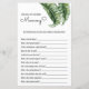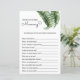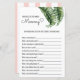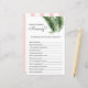 "¿Qué tan bien conoces a mamá?" Juego de Baby Shower con un tema de rayas de hojas tropicales y cabañas rosadas. Las obras de arte de la hoja de plátano acuático de inspiración vintage contribuyen a la decoración de tu playa, flamingo, piscina o ducha tropical para bebés. Son perfectas para una ducha de bebé con temática de colinas. Personalizar o edite más haciendo clic en el enlace "personalizar más adelante" y utilice la herramienta de diseño para modificar esta plantilla. Todos los estilos de texto, colores, tamaños se pueden modificar para adaptarlos a sus necesidades. Compra toda la colección en mi zazzle shop. ¿Necesita ayuda para personalizar? ¿Quieres una prueba? ¡Mándame un mensaje!