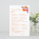 Pruebe la memoria de sus huéspedes con este juego de prueba de rima infantil con flores rosa y naranja, perfecto para una divertida ducha de bebé en primavera o verano. Con flores botánicas brillantes y una temática de fiestas de jardín encantadora, es una forma divertida de entretener a los huéspedes y despertar nostalgia. Una adición dulce a tu mesa de juegos de ducha floral para bebés y a tu gama clásica de juegos de ducha. CLAVE DE RESPUESTA: 1. cordero, 2. pared, 3. colina, 4. tuffet, 5. star, 6. ovejas, 7. araña, 8. violín, 9. mercado, 10. ratón, 11. armario, 12. hombre, 13. ovejas, 14. zapato, 15. Londres