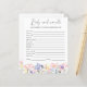 La invitación a la ducha para bebés incluye hermosas flores silvestres de acuarela y un guión de caligrafía que es perfecto para duchas de primavera, verano o otoño. ¡Bebé en flor! RESPUESTAS: REVUELTAS, LLORACIÓN, PACIFICADOR, BOTELLA, LUZ NOCTURNA, LULLABY, ESPÍRITU, EPIDURAL, BURP, SILLA ALTA, BOLSA DE DIAPER, ESPADA