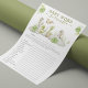 Crea diversión en una fiesta de bebé con este juego de palabras desordenadas con el tema 'dinosaurio acuarela'! Deleita a tus seres queridos con un estallido juguetón de color, inspirado en la belleza de la naturaleza. Los grises y verdes suaves agregarán un toque de fantasía a tu evento. ¿Y quién puede resistir a los dinosaurios audaces y enérgicos que dan vida a este diseño? Las respuestas están disponibles en el reverso. ¡Para una personalización más avanzada de este diseño, simplemente selecciona el enlace "Personalizar más" después de personalizar!
