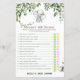 Lámina Juego de Baby Shower Safari Jungle Elephant IMPRES