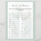 El juego de Baby Shower Sage Green Bear A to Z Baby Items es una actividad divertida y atractiva que le da un toque divertido a cualquier ducha de bebé. Los clientes tienen el reto de pensar en objetos relacionados con el bebé para cada letra del alfabeto, lo que hace que sea una forma entretenida de involucrar a todos. El juego cuenta con un encantador ilustracion de oso en suaves tonos verde sabio, perfecto para los temas minimalistas o neutros en función del género. Las tarjetas de juego, muy bien diseñadas, están impresas en papel de alta calidad, lo que las hace prácticas y elegantes. Este juego es fácil de jugar y adecuado para huéspedes de todas las edades. Sirve como un perfecto rompehielos, risas motivadoras y conversación mientras se crean recuerdos duraderos. El diseño único también lo convierte en un atractivo añadido a la decoración y fotos de la ducha de bebé. Para un aspecto fiesta cohesivo, empareja este juego con decoraciones y accesorios de Baby Shower Sage Green Bear.