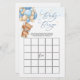Este diseño cuenta con un acogedor Oso de Teddy con globos azules y crema. El texto "Bingo Bebé" está escrito en letra moderna de caligrafía.