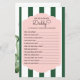 "¿Qué tan bien conoces a papá?" Juego de Baby Shower con un tema de rayas de hojas tropicales y cabañas rosadas. Las obras de arte de la hoja de plátano acuático de inspiración vintage contribuyen a la decoración de tu playa, flamingo, piscina o ducha tropical para bebés. Son perfectas para una ducha de bebé con temática de colinas. Personalizar o edite más haciendo clic en el enlace "personalizar más adelante" y utilice la herramienta de diseño para modificar esta plantilla. Todos los estilos de texto, colores, tamaños se pueden modificar para adaptarlos a sus necesidades. Compra toda la colección en mi zazzle shop. ¿Necesita ayuda para personalizar? ¿Quieres una prueba? ¡Mándame un mensaje!
