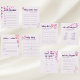 Este juego de Bingo Bebé, que forma parte de la colección Besos de Mariposa, es la manera perfecta de mantener entretenidos a sus huéspedes durante la apertura de un regalo. Puede decidir las reglas del bingo: diagonales, cuatro esquinas, etc. ¡Solamente que sus invitados llenen los cuadrados con regalos que esperan, y que se marquen como invitados de honor, abran y anuncien! Todo el texto es el personalizable de coincidir perfectamente con los detalles de su ocasión ↣ sólo hacer clic en el botón ‘Personalizar’. Mezcle con otros juegos dentro de la colección para un día completo de diversión!