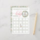¡Haga que la apertura de regalos sea divertida con esta tarjeta de juego de Bingo Bebé! Con una corona de agua verde, bayas de vacaciones y un acento de adorno de carrusel, este juego es perfecto para mantener a los huéspedes comprometidos durante la ducha. Los invitados llenan cada plaza con sus suposiciones de regalo, luego las marcan mientras se abren los regalos — primero para obtener cinco victorias seguidas!