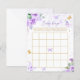 Juego de bingo bebé mariposa floral dorado púrpura.