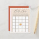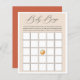 Elegante caligrafía de "Bingo Bebé", ficha de juego de ducha para bebé. Naranja acuarela y suave armazón de color naranja pastel con respaldo rústico de color naranja.