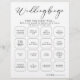 Este juego de bingo boda blanco y negro caligráfico es perfecto para una celebración boda clásica. El diseño presenta un hermoso tipo de letra caligráfica en negro.