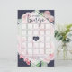Diseñadas para coincidir con nuestras invitaciones a la ducha de novias de la antigua Peonia, estas elegantes tarjetas de bingo con flores presentan un fondo azul medianoche, cuadrados de bingo en blanco e instrucciones de juego.