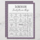 Disfrute jugando este divertido juego de bingo en su próxima reunión familiar. ¡¡Encuentra los partidos de tu propia familia para divertirte!! Fondo de baldosas morado y dorado nudo.