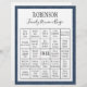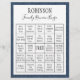 Disfrute jugando este divertido juego de bingo en su próxima reunión familiar. ¡¡Encuentra los partidos de tu propia familia para divertirte!! Fondo damasco azul.