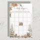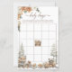 Mantén a los huéspedes entretenidos con este juego de bingo de Baby Shower Winter Wonderland. Con animales de madera color agua, trozos rústicos de madera y vegetación nevada, es una actividad divertida que combina perfectamente con el tema de la ducha de bebé en el bosque.