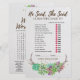 Este rústico y suculento juego de palabras boda floral es perfecto para una ducha de novias rústica o temática desértica. En la parte delantera de la tarjeta de juego se muestra "dijo que dijo", lo que es un divertido juego de preguntas sobre la novia y el novio. La parte posterior de la tarjeta contiene una búsqueda de palabras con palabras y frases relacionadas con el boda. El diseño se caracteriza por unos magníficos suculentos verdes, rosados y violetas coloridos, dispuestos sobre una corona de ramas y acentuados con confetti de oro falso. Personaliza la tarjeta de juego con el nombre de la novia. Por favor, contáctame con cualquier personalización de diseño que necesite. Diseñado con cuidado por Miriam en Fresh & Yummy Paperie. Para coordinar artículos, por favor visite mi tienda Zazzle: