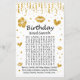 Juego de búsqueda de palabras de cumpleaños de purpurina de oro