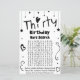 Lámina Juego de búsqueda de palabras en el cumpleaños 30