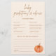 Una deliciosa mezcla de encanto festivo y diversión perfecta para cualquier ducha de bebé en otoño. Este juego neutro en género está adornado con elementos de boho de moda y coloridos diseños de calabaza, que atienden sin problemas tanto a los niños como a las niñas duchas. Con motivos naranjas y azules de calabaza, encarna el espíritu del otoño y ofrece una salida creativa para que los huéspedes compartan sus predicciones y consejos. Ideal para aquellos que buscan unas ideas únicas de calabaza o de ducha de bebé de calabaza lil, este juego le agrega un toque personalizado a su celebración, haciéndolo memorable para todos los asistentes.