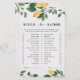 Diviértanse en su despedida de soltera con este divertido juego '¿Qué preferiría?'. El diseño presenta limones y vegetación con acuarela botánica. Personalice con el nombre de la novia y la fecha de la celebración. Para una personalización adicional, haga clic en el enlace "personalizar más". La papelería de boda a juego está disponible en nuestra Colección de Verano Citrus.