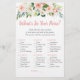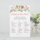 Estas elegantes tarjetas de '¿Qué Hay en tu Bolso?' son una excelente manera de iniciar la diversión en tu Despedida de Soltera y están garantizadas para ser un éxito total. Simplemente pásalas durante la Despedida de Soltera, donde los invitados se divertirán revisando sus bolsos y marcando los artículos que tienen de la lista. ¡La persona con más puntos gana! Este diseño presenta hermosas flores en acuarela rosadas rubor y crema.