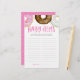 ¿Qué artículo de bebé comienza con cada carta? ¿Puedes adivinar qué escribió la futura mamá? | Añada esta tarjeta de juego de Baby Items divertidos a su ducha de bebé. Esta tarjeta de juego trivia con ducha para bebés cuenta con donuts de color rosa, blanco y chocolate con rociadores de colores. Personalice agregando nombres, eventos y fecha. Esta tarjeta de juego de donuts rosados Baby Items es perfecta para las duchas de bebé Chicas.