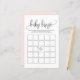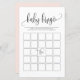 Añada este divertido juego de bingo para bebés a su ducha de bebé. Presenta un guión caprichoso negro, tipografía clásica, fondo rosa rubor. Puedes personalizar el dorso de esta tarjeta de juego de ducha para bebés. Esta tarjeta de bingo para bebés es perfecta para cualquier tema de la ducha de bebé y la temporada.