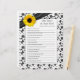 Puedes personalizar el nombre de este girasol amarillo, floral blanca y negra y de la lazo de la ducha de novia personalizada "quién conoce mejor a la novia". Puede cambiar el texto utilizando las opciones de personalización. Los colores de este juego de ducha de novia son amarillos, negros y blancos... perfecto para una ducha de matrimonio en primavera, verano o otoño.