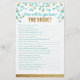 ¿Qué tan bien conoces a la novia? Pídele a sus invitados que respondan a las preguntas sobre la nueva novia. Este juego tiene un toque de glamour con purpurina de oro y confiti acuático.