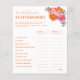 Diviértase en su ducha/soltera nupcial con este juego genial, con un texto floral y editable en color rosa bonito y naranja. Personalizar si es necesario haciendo clic en "editar usando la herramienta de diseño".