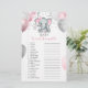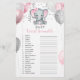 Esta tarjeta de juego de ducha de rasgos para bebé tiene elefante de bebé rosa y gris con globos y confeti. Puede personalizar el juego haciendo clic en el botón "personalizar". CLAVE DE RESPUESTA: 1. Diaper, 2. Cuna, 3. Rattle, 4. Botella, 5. Pacificador, 6. Embarazo, 7. Fórmula 8. Oso de peluche, 9. Alto Presidente, 10. Stroller, 11. Monitor de bebé, 12. Rattle, 13. Bebé en polvo, 14. Teléfono móvil, 15. Bomba mamaria, 16. Matrícula, 17. Asiento para coches, 18. Llorando, 19. Enfermera, 20. Crema de pañales