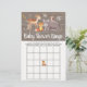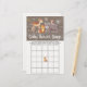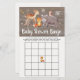 Dulce juego de bingo de ducha de bebé de invierno con adorables ilustraciones acuáticos de animales de bosque, flores, vegetación con un overlay de estrellas doradas y copos de nieve y "Baby Shower Bingo" en un guión de crema clara.
