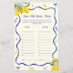Haz que tu tema principal de la ducha de novia sea aún más divertido con este juego personalizado de la edad de la ducha de limón de la brigada principal. Con un encantador diseño de limón, este juego interactivo es perfecto para una celebración de limón con ducha de novia. Es una deliciosa adición a tu tema de ducha de limón, que trae risas y dulces recuerdos. Ideal para las ideas de ducha de novia con tema de limón, este juego también se adapta perfectamente a las ideas de ducha de novia con tema italiano limón y a las ideas de ducha de novias de verano.