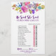 Este juego de flores moradas y rosas "dijo que dijo" es perfecto para una ducha de novia con tema floral. En la parte delantera de la tarjeta de juego se muestra "dijo que dijo", lo que es un divertido juego de preguntas sobre la novia y el novio. La parte posterior de la tarjeta contiene una búsqueda de palabras con palabras y frases relacionadas con el boda. El diseño cuenta con magenta brillante, flores rosas, púrpura de ciruela y azul, y un bonito y audaz tipo de letra de guión. Personalice la tarjeta de juego con el nombre de la novia y la fecha de la ducha de novia. Por favor, contáctame con cualquier personalización de diseño que necesite. Diseñado con cuidado por Miriam en Fresh & Yummy Paperie. Para coordinar artículos, por favor visite mi tienda Zazzle: